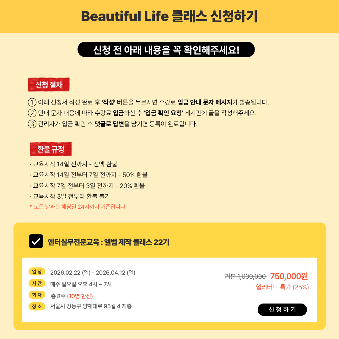 앨범제작 실습 클래스 22기 모집 : 소수 한정 얼리버드 할인!