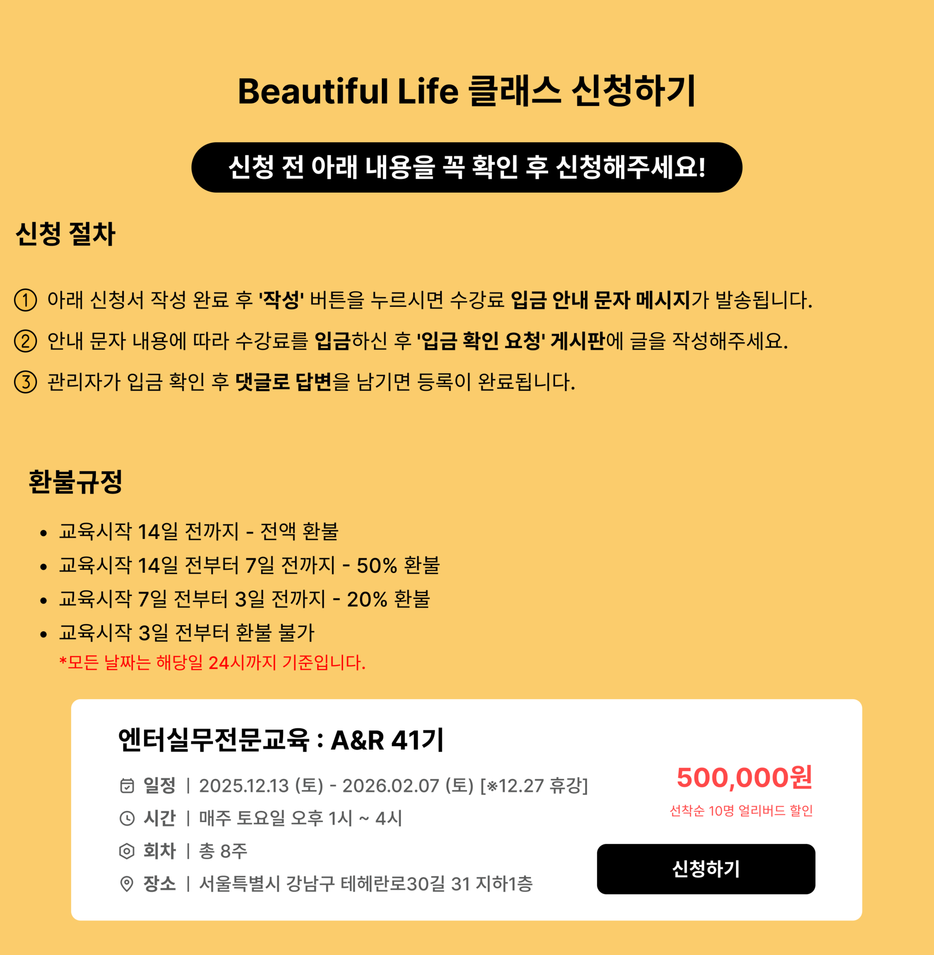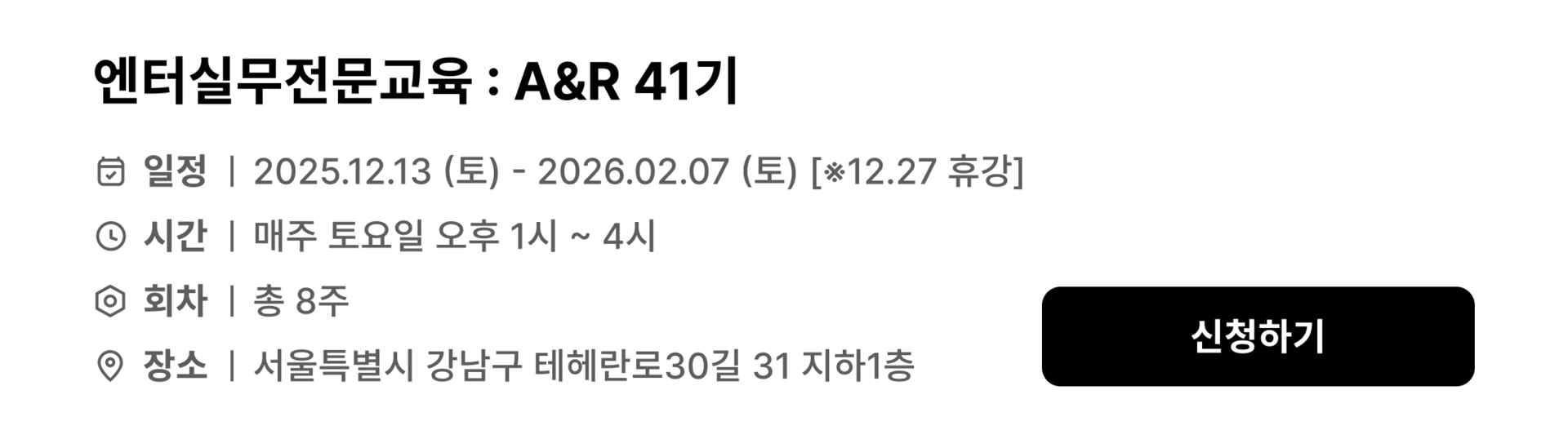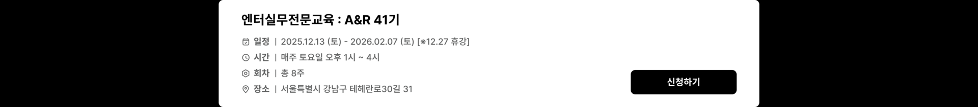 A&R 실무 전문교육 41기 : 선착순 10명 얼리버드할인!!